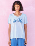This chic basic captures the spirit of french riviera with blue hues and and a romantic graphic print. The relaxed fit and soft vintage feel will quickly take the place of "best tee" in your wardrobe.
