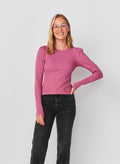 This long-sleeve top features subtle puff shoulders and a fitted silhouette for a feminine twist on a classic style. Soft and versatile, it’s perfect for layering or wearing on its own.