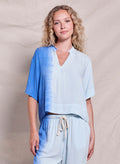 Tie Dye V-neck top with raw fringe at the collar and sleeves reaching half way. A loose top that's comfortable and easy to wear. Pair with our Sundry Tie Dye Pant.