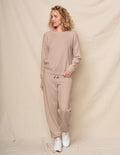 This raglan sweatshirt comes in a vibrant taupe hue, featuring clean lines and a relaxed fit. Its soft, lightweight fleece and classic crew neckline are complemented by ribbed cuffs and hem, making it a comfortable yet bold everyday essential.