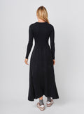 Sundry Long Sleeve Mixed Rib Cupro Dress in Deep Navy