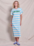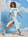 This striped maxi tee dress is a springtime essential, offering a breezy, relaxed fit that moves with you. Made from ultra-soft fabric with playful "BONJOUR" lettering and side slits, it brings easy comfort and cheerful vibes to any sunny day.