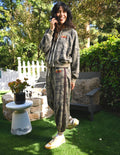 This camo zip-up hoodie features a relaxed fit with a drawstring hood and ribbed cuffs and hem. A small rainbow graphic on the chest adds a pop of color to the rugged print.