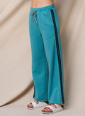 Soft to the touch and easy to wear with ribbed elastic at the waist and fits relaxed. Contrasting stripe details on the side. A lounge pant that's perfect to wear at home or outdoors to daily activities.