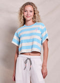 This cropped striped tee features a boxy, relaxed cut that sits effortlessly at the waist for a laid-back vibe. Crafted from soft, breathable fabric with a sweet graphic pink flower detail on the chest, it’s the perfect mix of comfort and charm for sunny days.