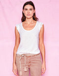 With the addition of a crochet petal at the shoulder of this tank, this staple tank is forever changed. Enjoy the soft Pima cotton and straight fit through the body, giving a classic canvas for the feminine touches to shine.