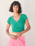 This classic V Neck features a slim fit and a perfect drape for styling with your favorite denim. The 100% cotton fabrication, made locally in Los Angeles, has the balance of quality and breathability that we all crave in our go-to tees.