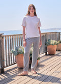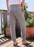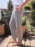 These easy jogger-style pants are made from a soft, cozy knit with a relaxed fit, elastic waistband, and adjustable drawstring for all-day comfort. Finished with tapered legs and cuffed hems in a classic heather grey, they’re perfect for laid-back lounging or casual outings.