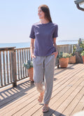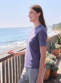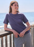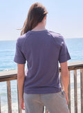 Soft supima slub boyfriend tee with exaggerated contrast cuffs and raglan sleeves.