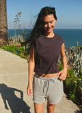 Muscle tank cropped with a crew neck in our softest supima slub fabric. A comfortable and easy to wear with high waisted jeans.