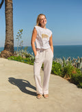 Muscle tee tank with a "Not My First Rodeo" graphic where there is a cowboy riding on a horse on the front. Soft and slightly capped tank where the sleeve covered the shoulders a bit.