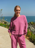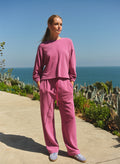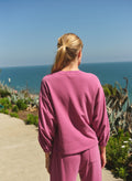 This relaxed long-sleeve top is made from a soft, breathable fabric with a loose silhouette and gently cinched cuffs for an easy, polished feel. Finished in a deep fuchsia hue, it’s an effortless staple that pairs perfectly with matching lounge or track pieces.