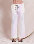 Tie die straight jogger pants with a striped cord waist tie. We styled it with our Tie Die Pullover as a set.
