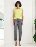A sharp shoulder and straight fit is just what we dream of for the steamy days to come. This sleek silhouette gives structure when paired with a loose pant or short, making it effortless to create a chic, breezy look from head to toe.