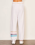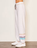 Enjoy our famed Jogger with stripe detail for cozy lounging or a sporty everyday look. Anyway you wear this piece, you'll immediately fall in love with the ultra-soft fabric and our signature rainbow-cord tie for a hint of color you can easily style back to. It pairs well with the Women's Raglan Sweatshirt.