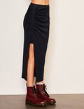 Ruching along the hip, accompanied by a thigh slit and seamed waist, allows you to flaunt your shape in our soft fabric.