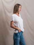 Ultra soft blend of modal and cotton that is light and breathable. This will be one of the coziest and most comfortable tees you own. Garment dyed with extra softeners for a soft lived in feel. Pre washed for min shrinkage.