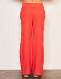 Drawstring wide leg trouser with stripe cord and lower leg snap detail.