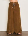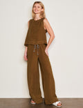 For a pant that can handle the heat, this high-waisted pant is the ultimate styling piece. Full length and wide leg silhouette create a breathable space while the waist tie cinches in to give the overall fit the perfect shape.