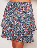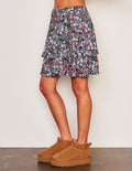Knee length skirt with side zip closure with gentle ruffle layers and hem. Pairs well withSundry's Femme Henley Shirt.