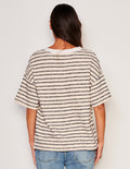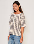 Relaxed short sleeve henley with contrast white collar and three button detail.