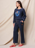 This deep navy sweater radiates retro charm with its playful “Love Le Sunshine” graphic in bold, sun-washed hues. Featuring contrast stitching and a relaxed fit, it’s the perfect cozy layer for breezy mornings or sunset lounging by the coast.
