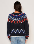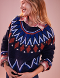 Crew neck sweater with fairisle detail at collar and a slim, yet relaxed fit.