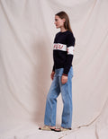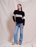 Cozy sweater season in our crewneck sweater with "La Fleur" on the sweater and contrast stitching on the sleeve. A great gift or to layer on top.