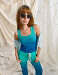 Ribbed cropped pants with a slight flare on the bottom. Fitted to the body and can be paired with our crop square neck tank.