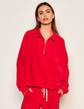 Relaxed fit half zip popover. Pair with our Relaxed Wide Leg Pant.
