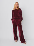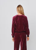 This soft velour pullover brings a cozy-meets-sporty feel with its relaxed fit and contrast striped trim. Featuring subtle piping along the sleeves and ribbed cuffs and hem, it’s an effortless piece for lounging or layering with laid-back polish.