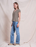 A deep v-neck casual tee in Fern! Soft to the touch, this tee is perfect for any day. Pair with white trousers, shorts, joggers, or any denim.