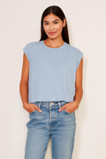 Muscle tank cropped with a crew neck in our softest supima slub fabric. A comfortable and easy to wear with high waisted jeans.