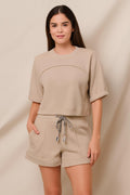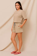 This vibrant top in Taupe captures the spirit of summer with its relaxed shape and sporty ribbed neckline. The pop-color hue and casual silhouette make it a playful essential for beach days or spontaneous weekend escapes.