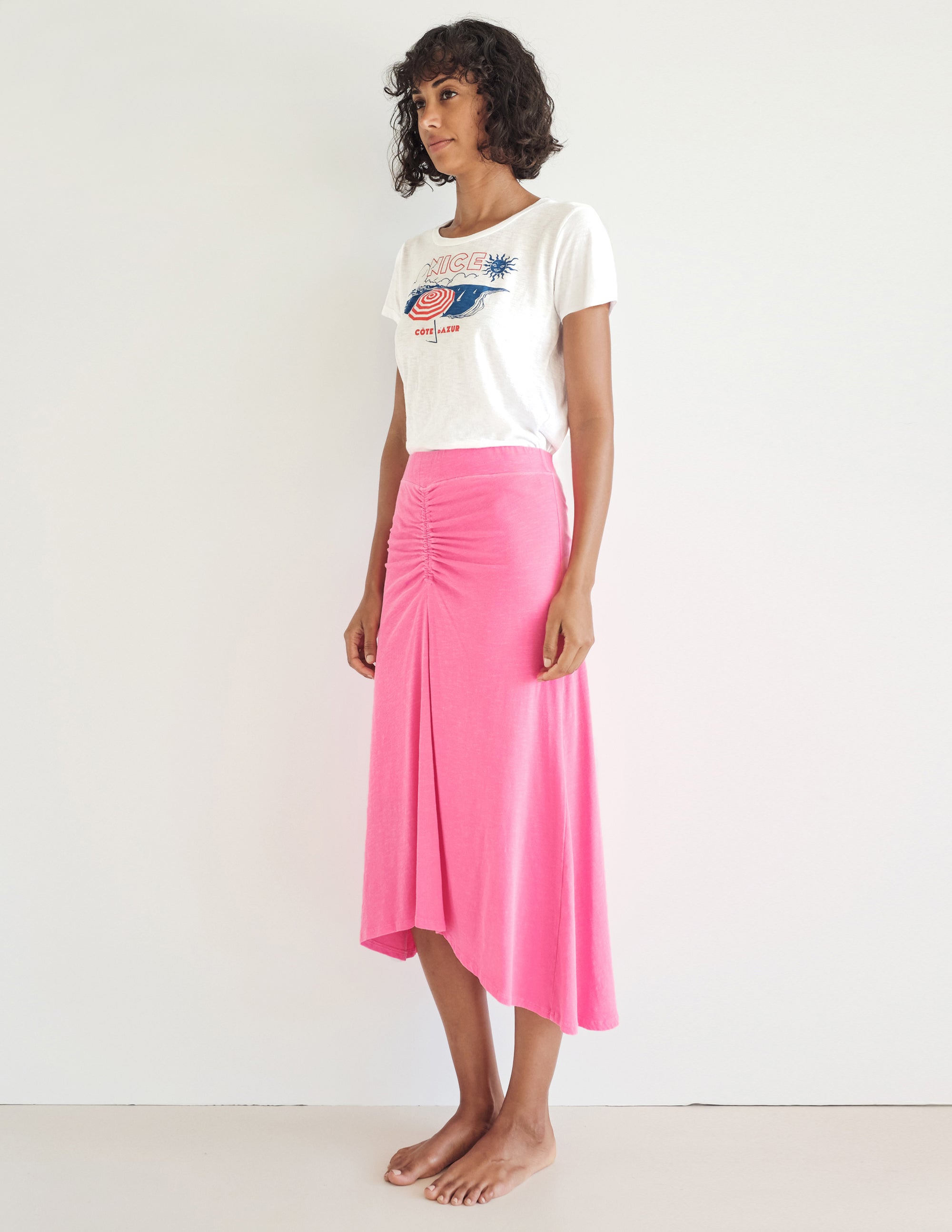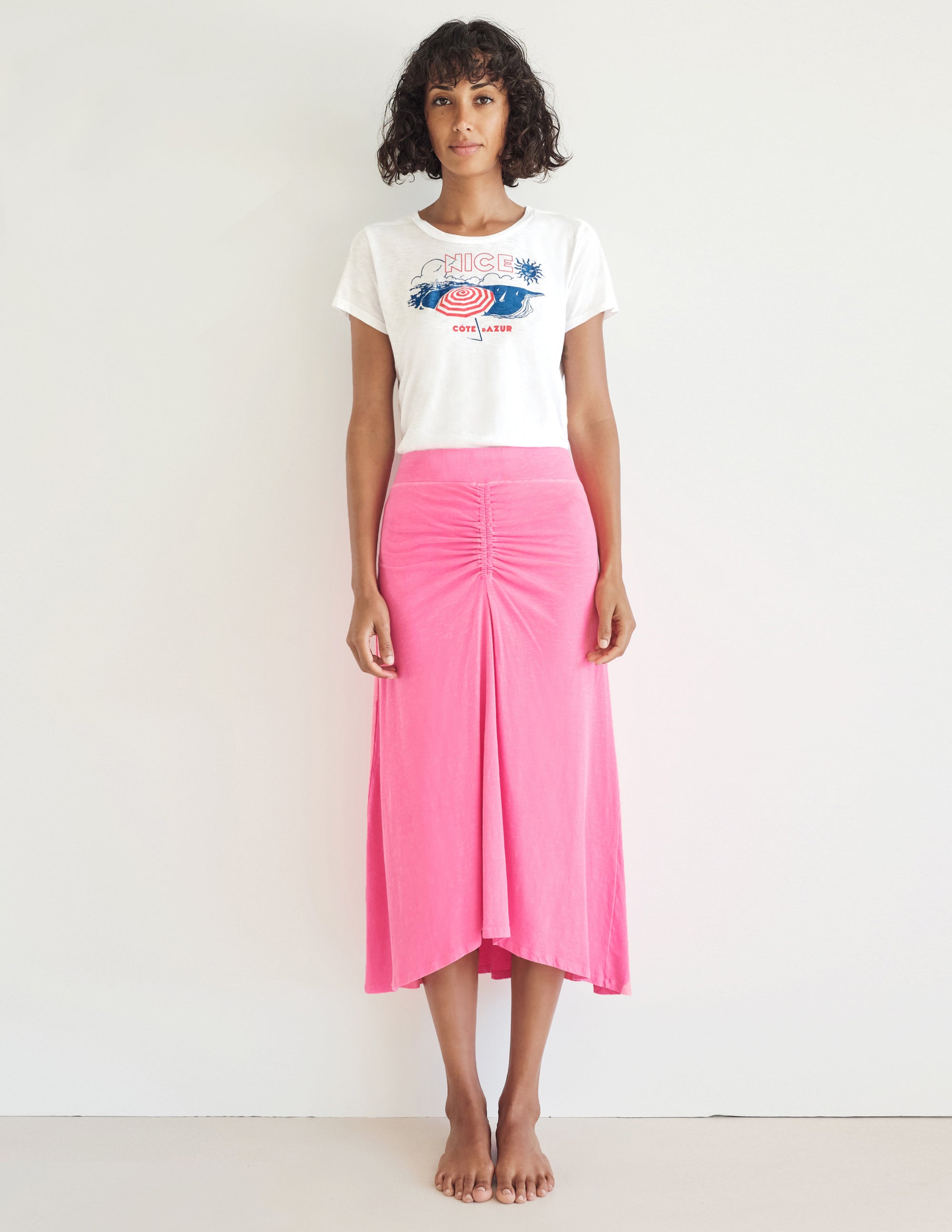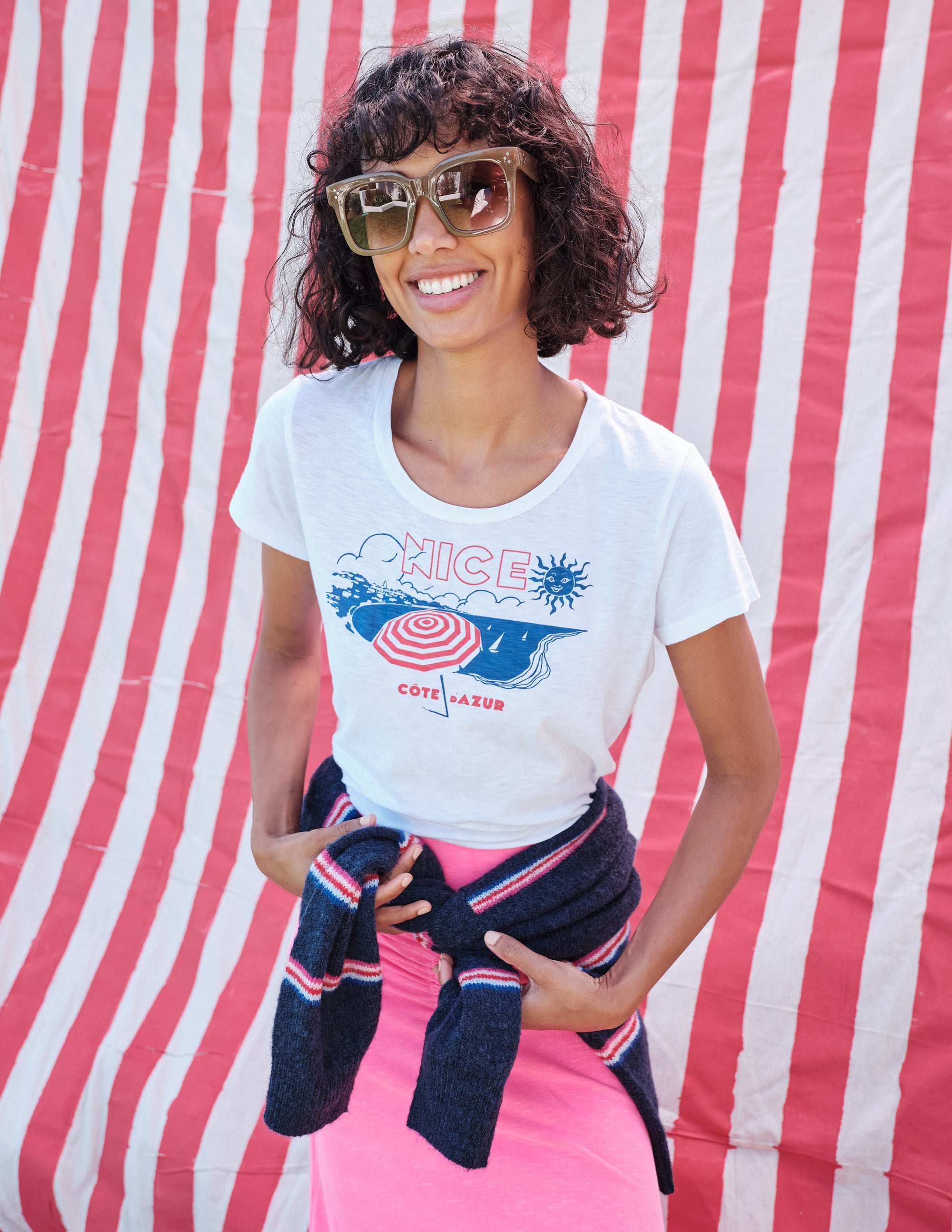 The bestselling Boy Tee, loved for its lightweight breathability and relaxed fit, is a classic wardrobe essential. Embellished with a Nice inspired graphic, LA and French style merge in one seamless style.
