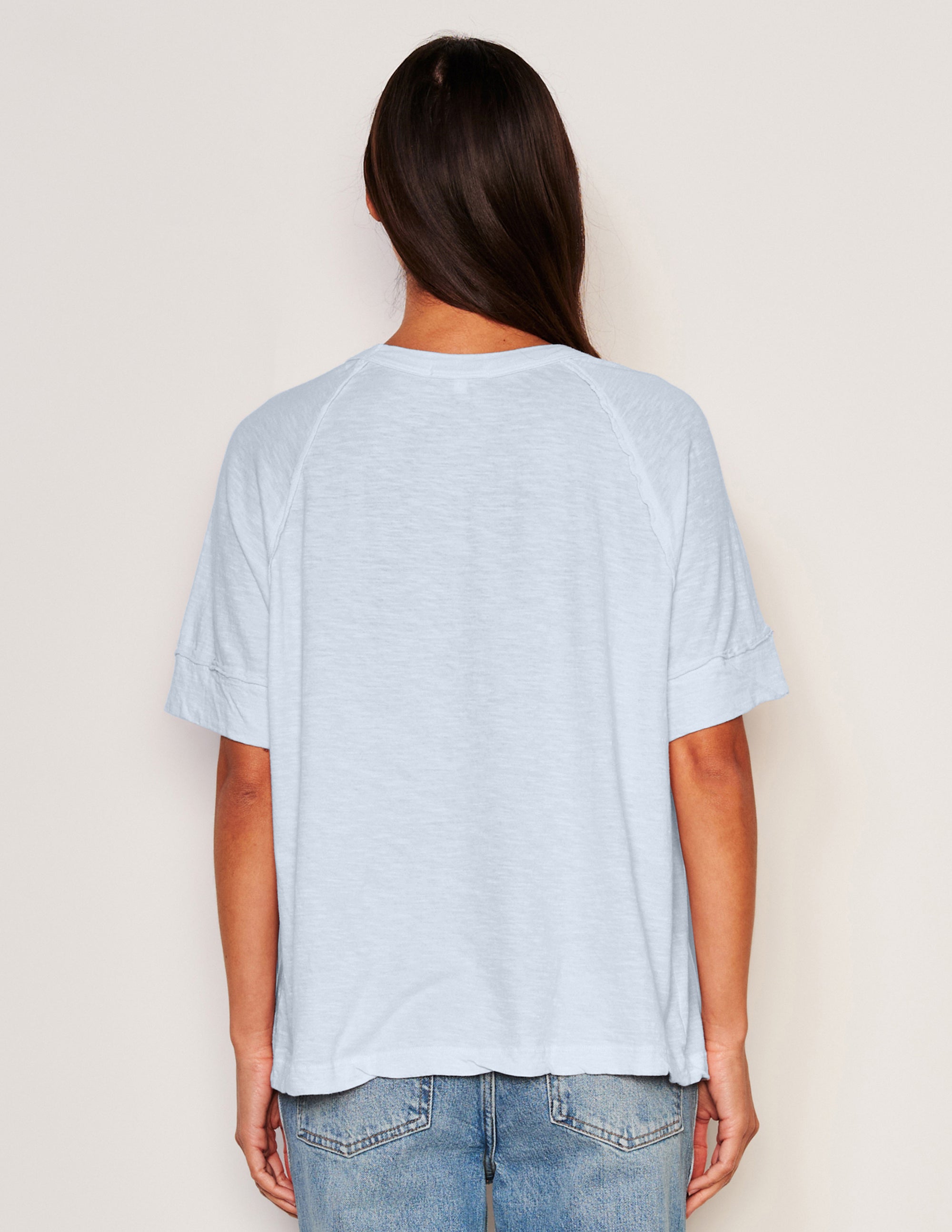 Soft supima slub boyfriend tee with exaggerated contrast cuffs and raglan sleeves.