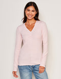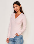 Sundry Long Sleeve V-neck Top in Flush Pink