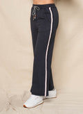These wide-leg pants bring effortless French-inspired California cool, featuring a relaxed fit and playful contrast trim racing down the sides. Perfect for lounging or strolling outdoors, they strike the ideal balance of laid-back comfort and standout style.