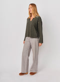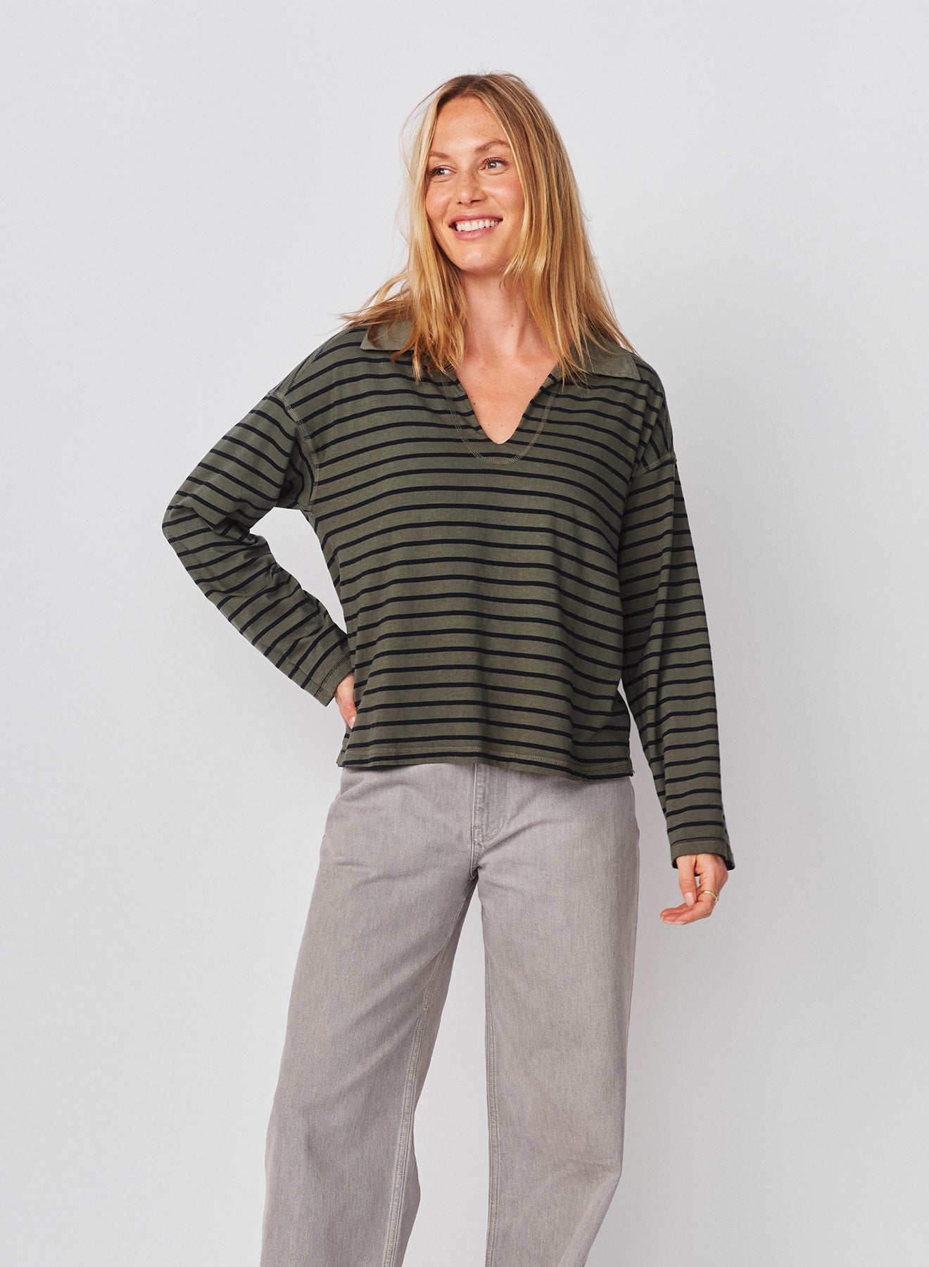 This striped tee features a relaxed fit with a classic crew neckline, blending effortless comfort with a timeless, everyday look.