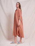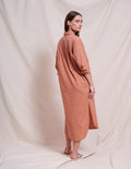 Keep cool in the heat with this easy flowing dress. A mid length shirt dress you can throw on with a slit on the side and button closures.