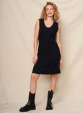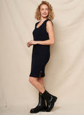 This sleeveless ribbed dress is an easy blend of French chic and California ease, cut in a flattering slim silhouette with a scooped neckline. Its textured knit and subtle side slits make it perfect for laid-back styling with boots or casual sneakers.