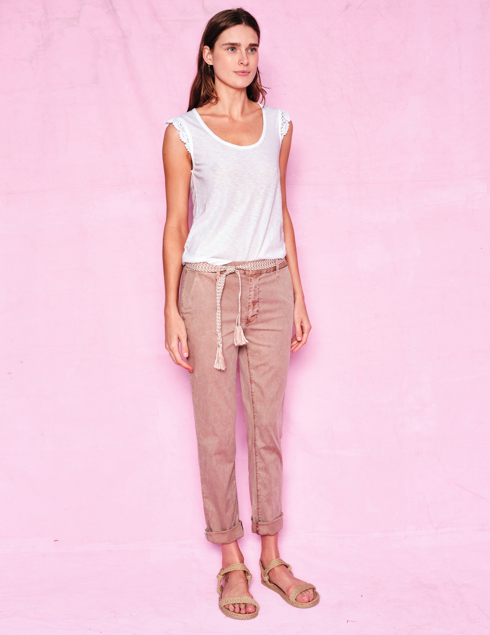 With the addition of a crochet petal at the shoulder of this tank, this staple tank is forever changed. Enjoy the soft Pima cotton and straight fit through the body, giving a classic canvas for the feminine touches to shine.